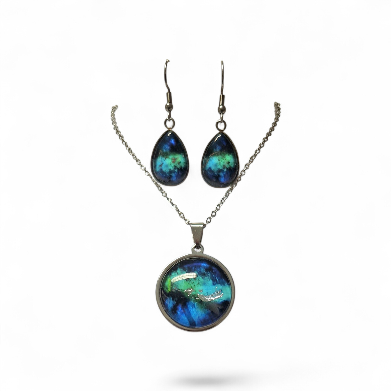 Irish Art Jewellery Set - Hand-Finished Gold Leaf Crystal Dome Pendant & Earrings
